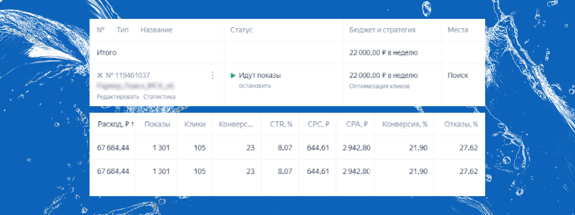 - Настроена поисковая рекламная кампания с прицелом на трафик, готовый к заказу.