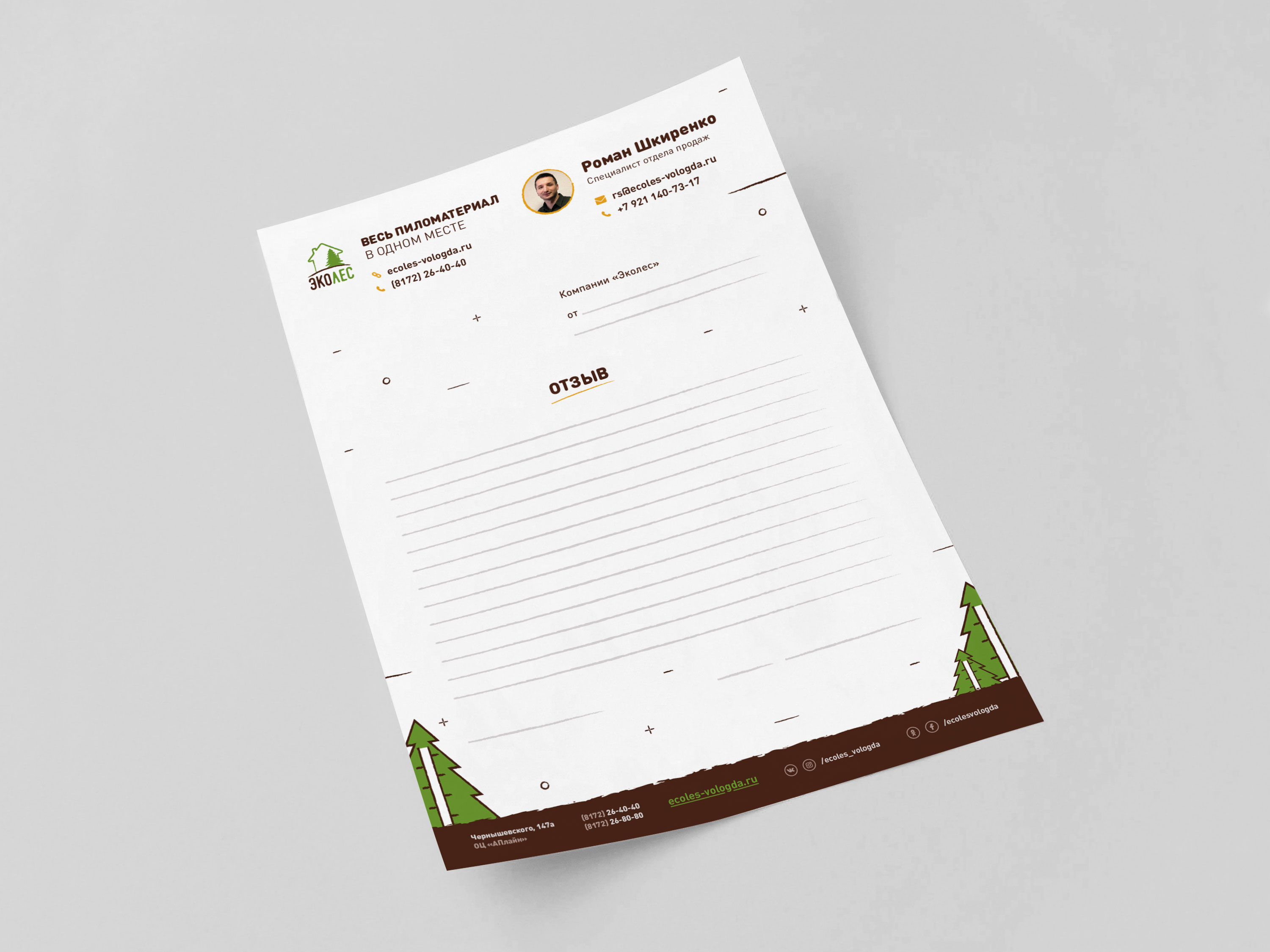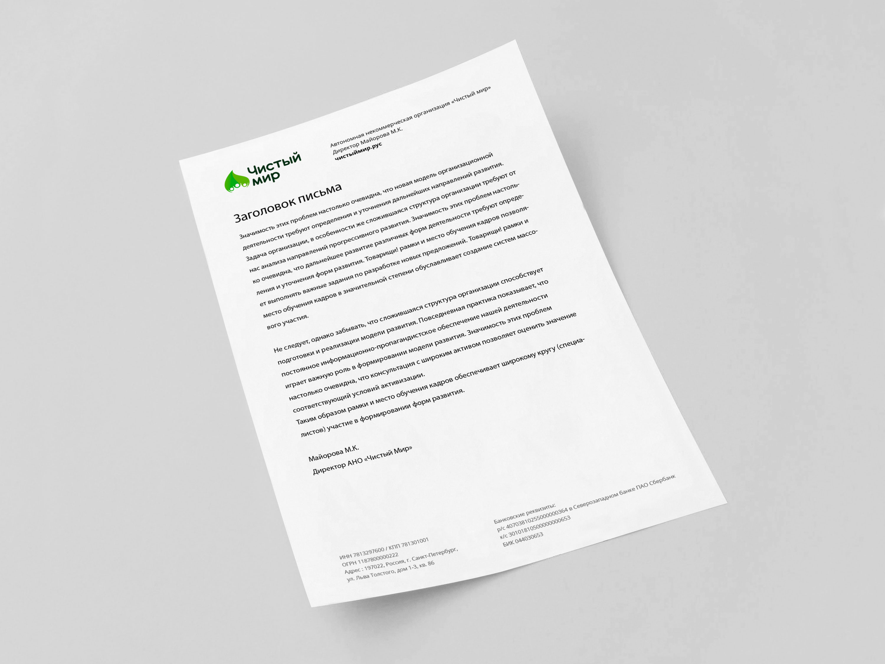 В основе — простая структура, чёткая иерархия, фирменная типографика и сдержанный дизайн без перегрузки. Бланк должен одинаково хорошо работать в печати и в цифровом формате.
