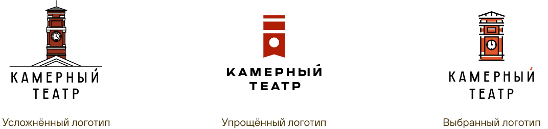 В итоге нашли компромисс: сохранили важные элементы, убрав лишнее, чтобы сохранить образ театра и сделать логотип понятным.