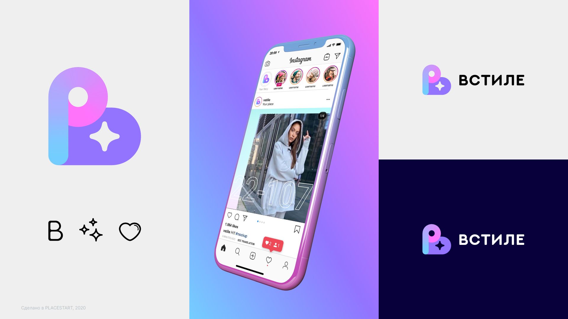 Логотип разработан с учётом современных тенденций. Яркий градиент делает его броским и привлекательным. Начертания напоминают лайк и букву «В». Логотип отражает молодёжный стиль и основные актуальные тренды дизайна. А гротескный шрифт делает удобным для прочтения с любого устройства.