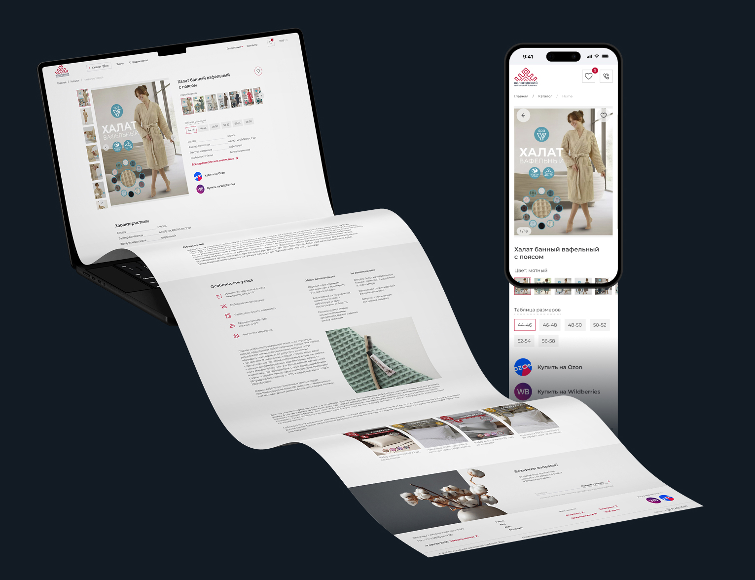 Мы разработали сайт интернет-магазин с полным каталогом продукции для Вологодского текстильного комбината, владеющим брендом VOTEX.