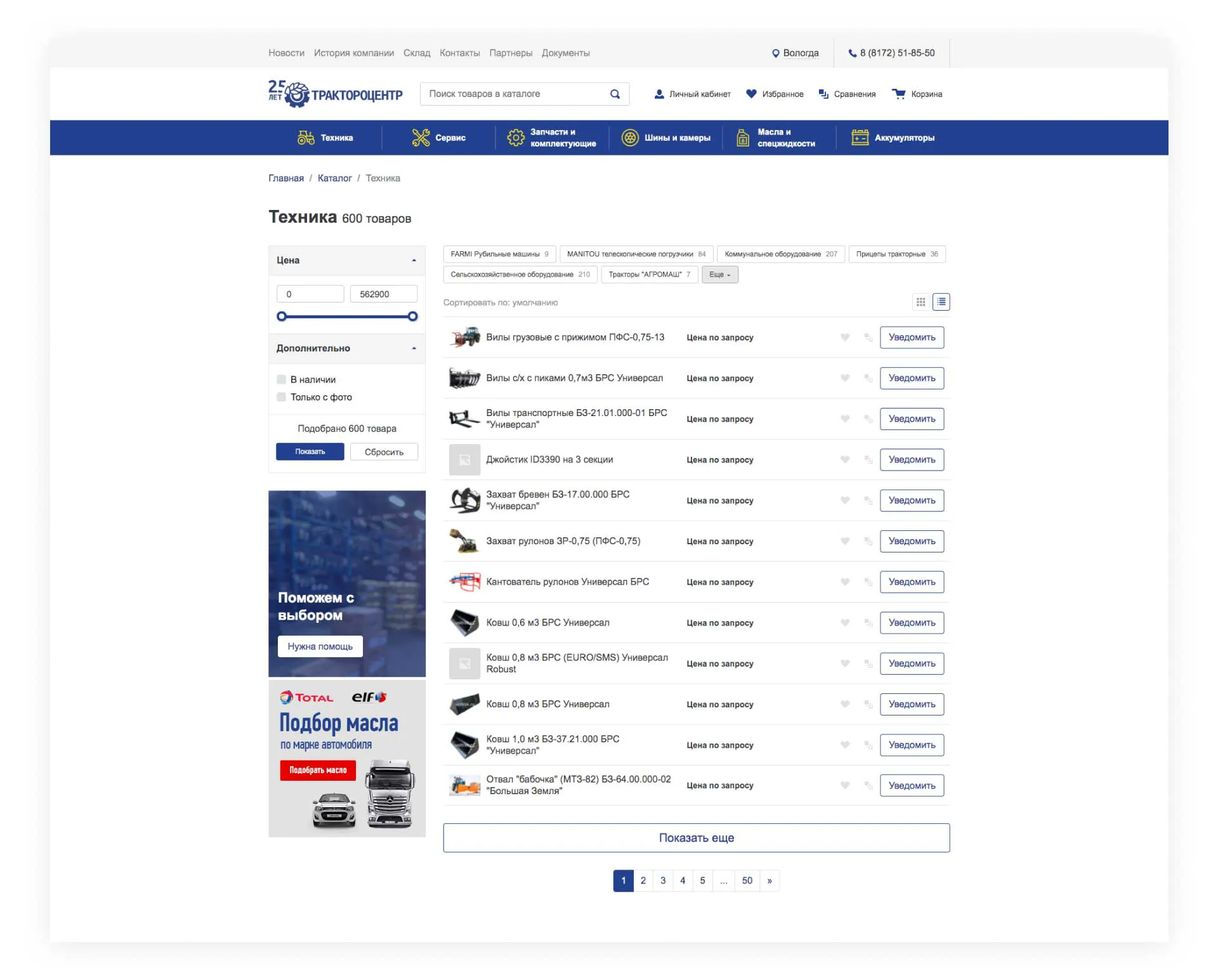 Разработали сайт для крупного онлайн-магазина запчастей грузовых машин и сельхозтехники.