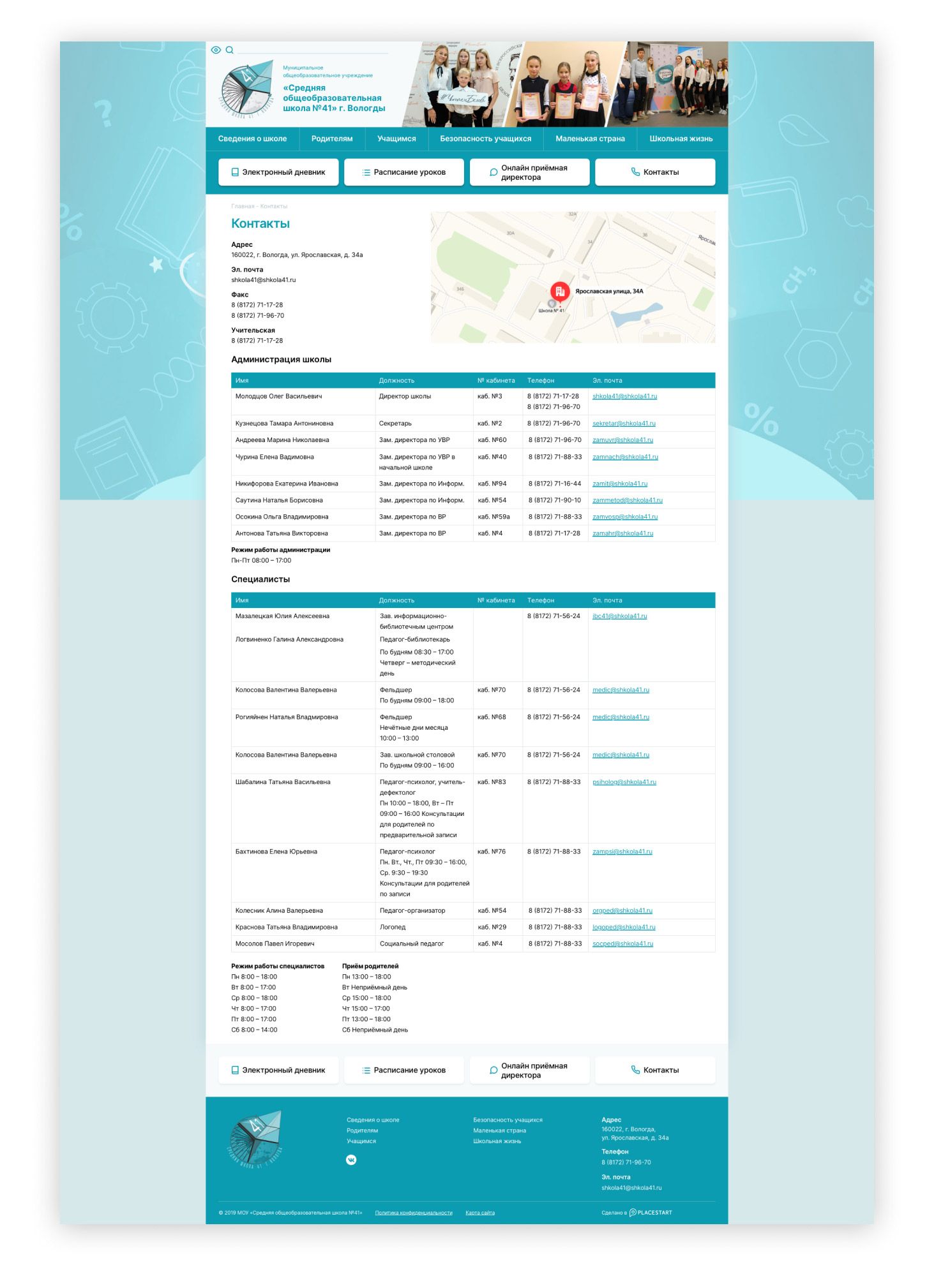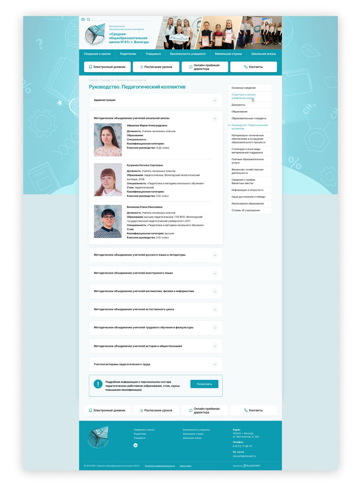 В разделе «Руководство» есть список всех преподавателей и сотрудников школы.