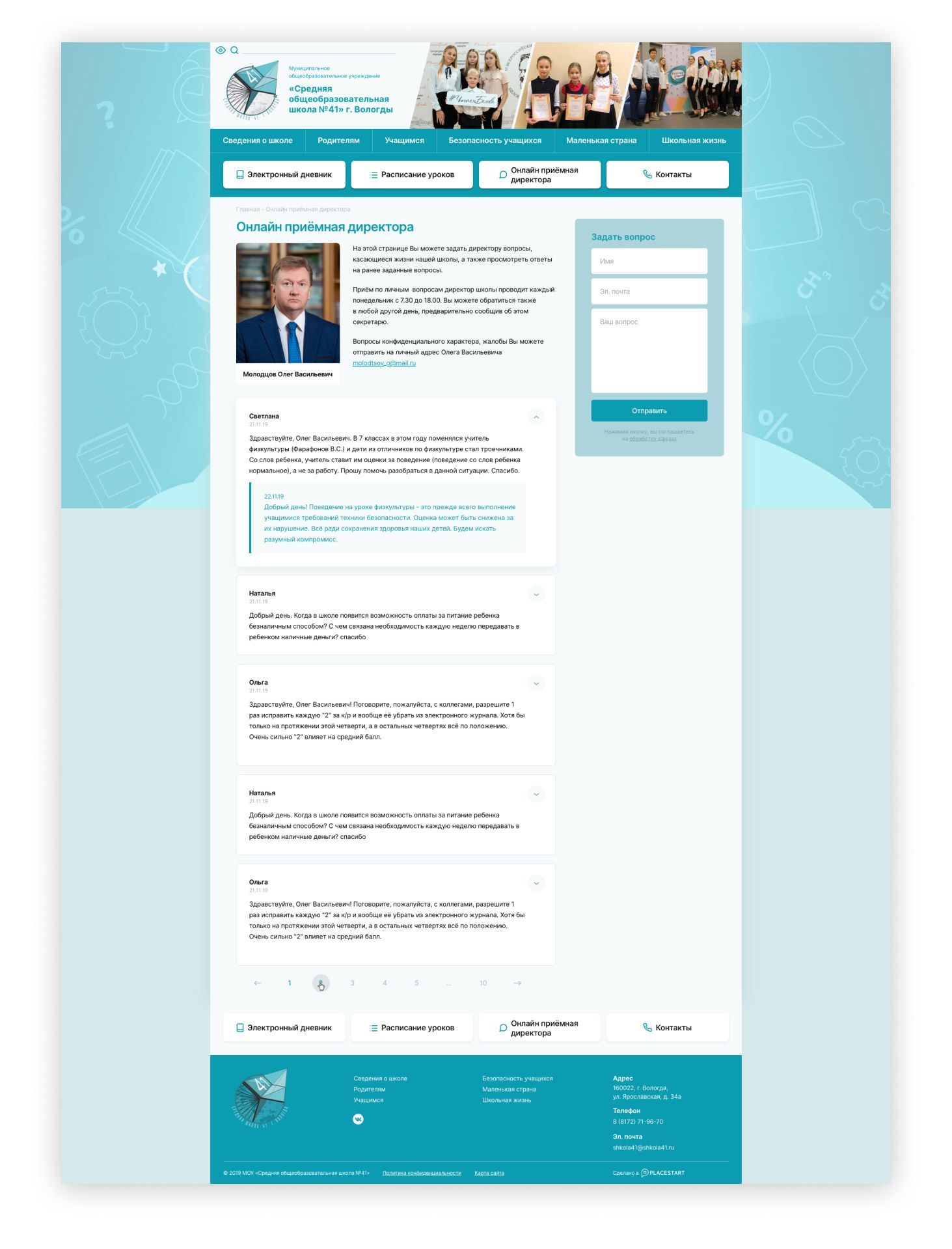 На сайте есть онлайн приёмная директора. На этой странице можно обратиться к директору с любыми вопросами. Ответы директора публикуются в виде ленты.