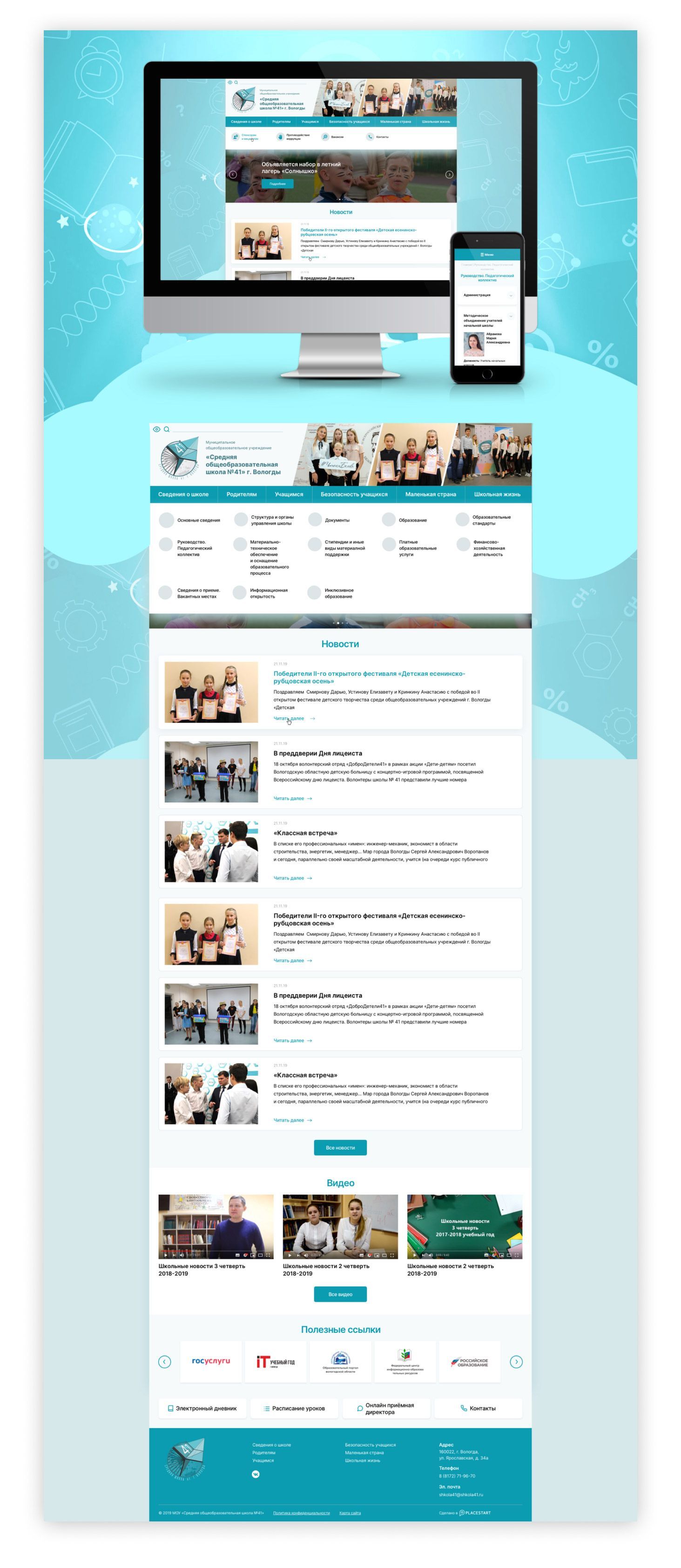 Сайт школы посещают люди разных возрастов, поэтому пожеланием клиента было сделать сайт похожим на старый. Предыдущий сайт был разработан достаточно давно поэтому в работе использовали классические паттерны сайтостроения, улучшив некоторые блоки.