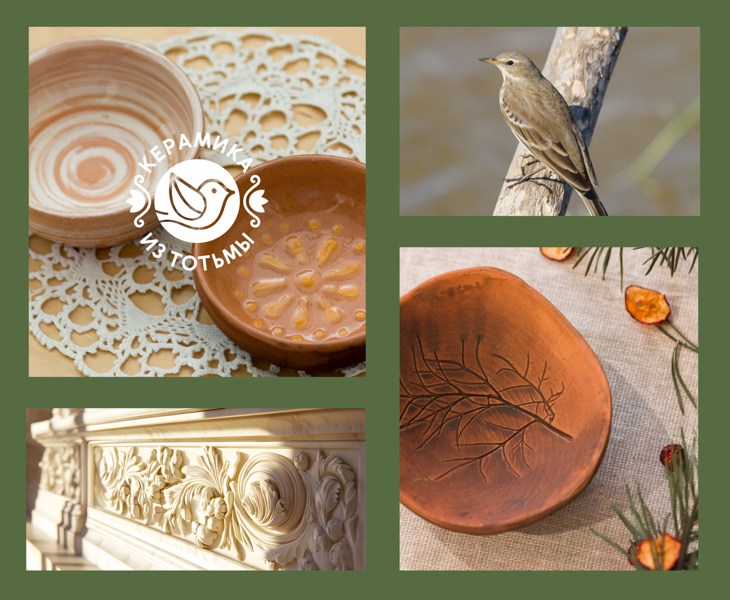 «Керамика из Тотьмы» — локальный бренд авторских керамических изделий ручной работы, появившийся благодаря социальным проектам по возрождению гончарного промысла. Занимается созданием утилитарной посуды традиционным ручным способом лепки, изготовлением изразцов и изразцовой плитки. Также регулярно организовываются мастер-классы для жителей Тотьмы и туристов, на которых участники знакомятся с творчеством из глины.