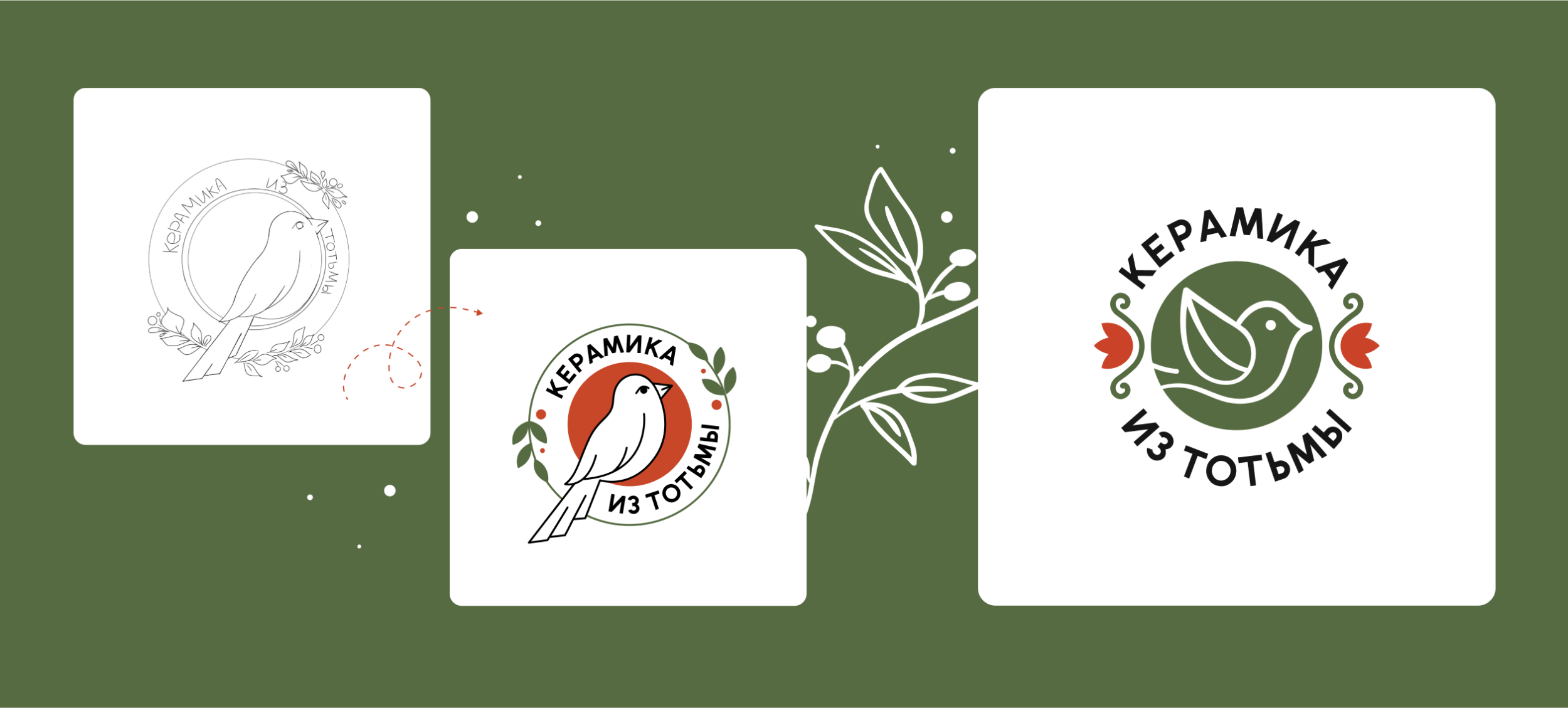 В основе логотипа лежит форма круга, напоминающая тарелку, в которую вписана птичка, похожая на местных пернатых. Растительный орнамент по краям — отсылка к «Городскому саду» и традиционным тотемским картушам.