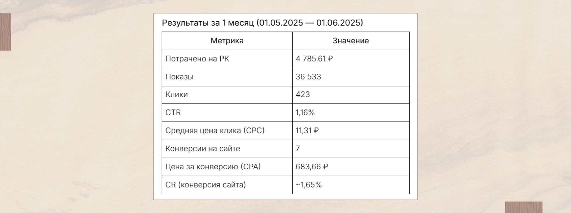 Период рекламы: май–июнь 2025